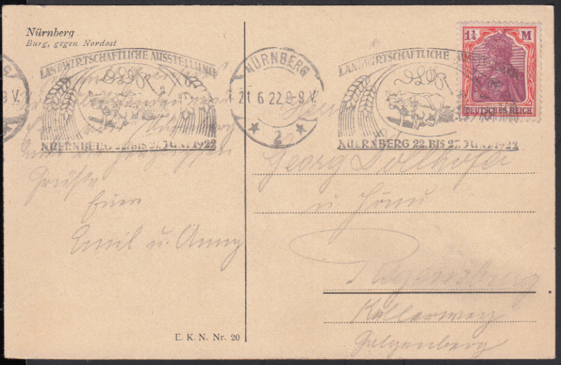 Nr. 08878 - AK198 - DETMOLD / 1.6.22 / Möbelmesse / 22. bis 30. Juli 1922, klarer SoSt. auf AK mit 1 1/4 M. Germania