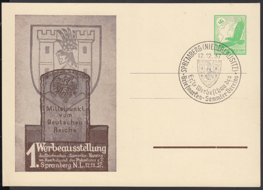 | Nr. 38295 - GAPP 142 C20 - 5 Pf. Luftpost, PrivatGA zur Werbeausstellung Spremberg 12.12.37 blanko mit entspr. Sonderstempel | ||