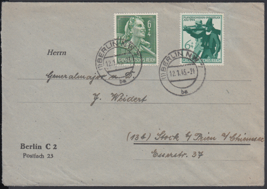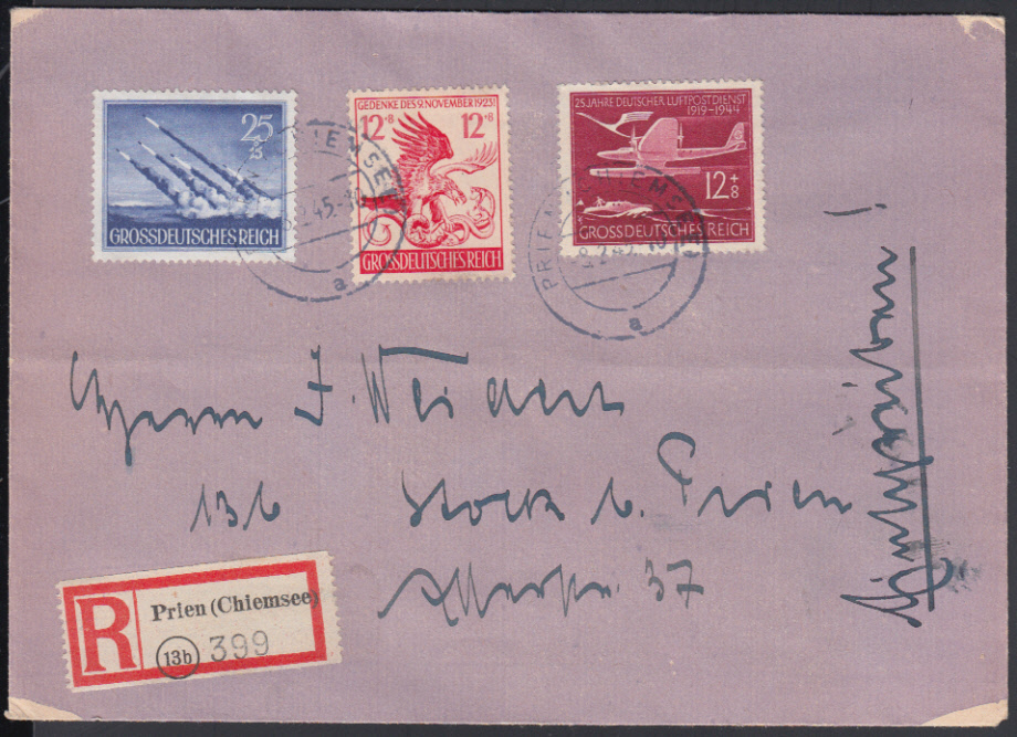 | Nr. 15009 - BfVs - (13b) MÜNCHEN 1 / 5.2.45, Absenderfreistempel des Oberbürger- meisters auf Briefvorderseite, PLGZ im Kreis sowohl im Tagesstempel wie auch in gleicher Form im Absendertext eingefügt, Schnellbacher LP | ||
