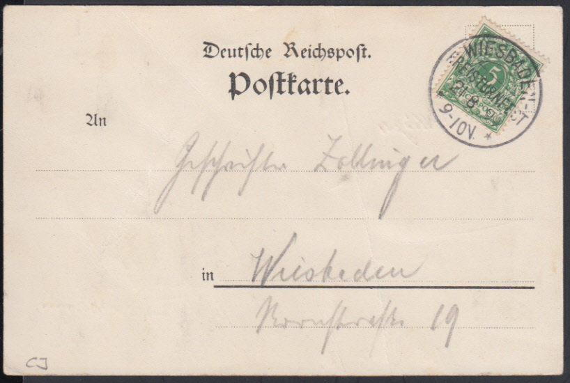 Nr. 38598 - AK46 - WIESBADEN- / KREISTURNFEST / 21.8.99, sehr klarer SoSt. als Kreis-Obersegmentstempel auf entspr. Veranstaltungs-Litho mit 5 Pf. Krone, leichter senkr. Bug