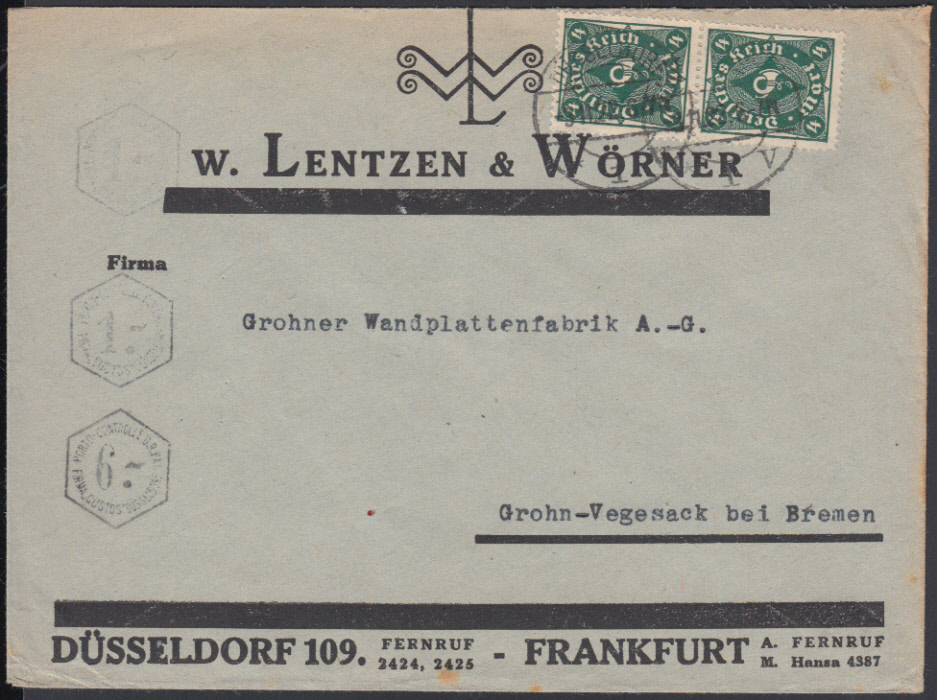 | DEUTSCHES REICH - INFLATION / STEMPEL - PORTOKONTROLLSTEMPEL | ||
