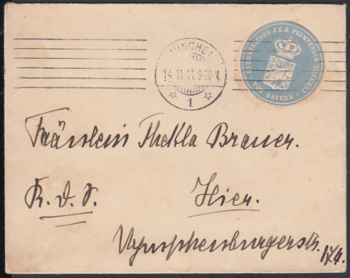 Nr. 38290 - - MÜNCHEN 1 / 14.11.11, Maschinenstempel auf kleinform. Ortsbrief "K.D.S." mit blauer Siegelmarke "DIENSTSIEGEL I.K.H. PRINZESSIN THERESE VON BAYERN" rechts oben
