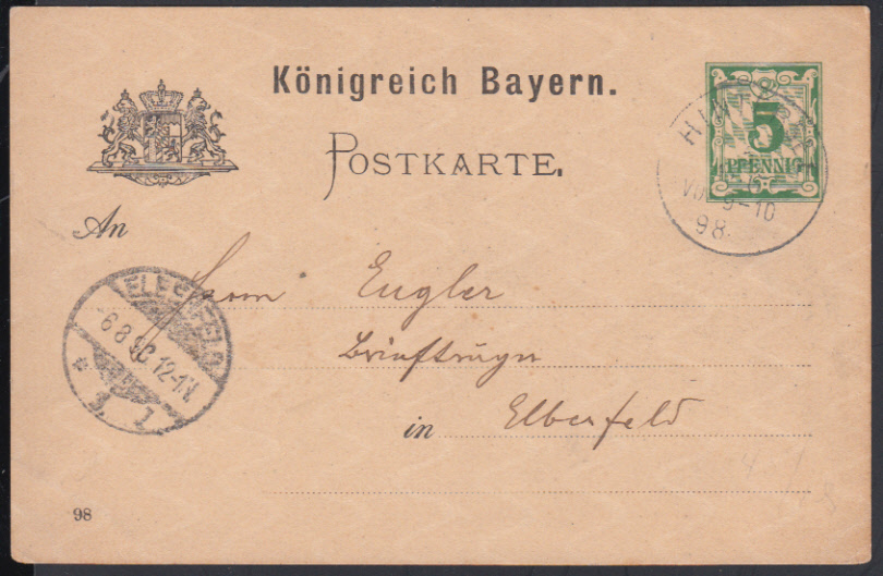 Nr. 38484 - GAP 44/04 - HINTERSEE / 5.8.98, K1 der Postablage (vom 1.6.1896 bis 30.9.1898) auf GA 5 Pf. Ziffer auf Raute
