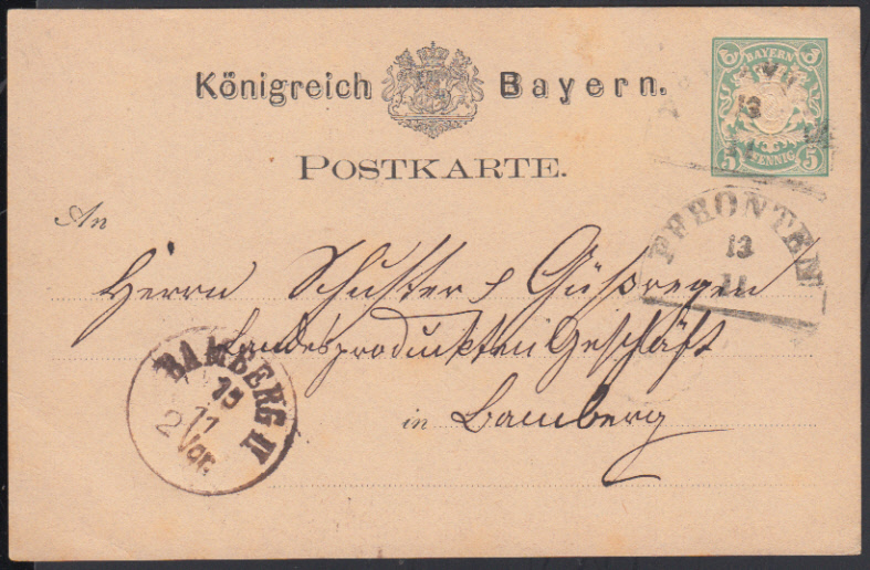 Nr. 38301 - GAP 8 II - PFRONTEN / 13.11. (1877), Segmentstempel auf GA 5 Pf. Wappen