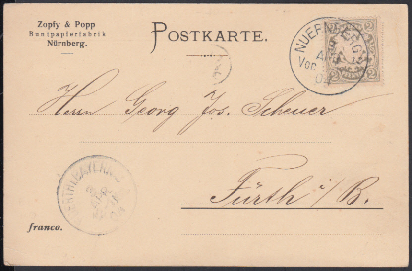 Nr. 38615 - Kte65y - NUERNBERG 2 / 3.4.04, 2 Pf. Wappen auf Firmen-Vordruckkarte im Nachbarortsverkehr nach Fürth