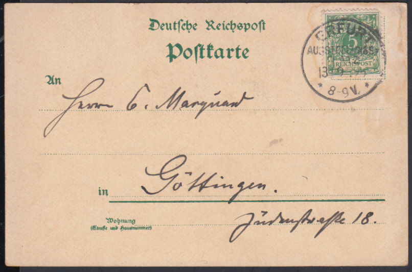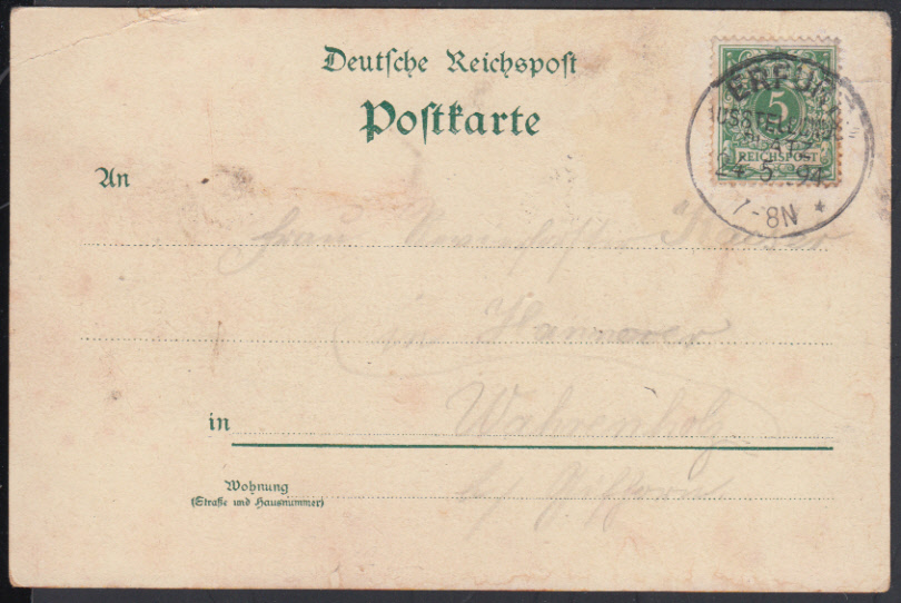 Nr. 38630 - AK46 - ERFURT / AUSSTELLUNGS- / PLATZ / 24.5.94, Sonderstempel auf Farblitho "Thüringer Gewerbe- und Industrie-Ausstellung ERFURT 1894 : Haupt- und Ausstellungspalast" mit 5 Pf. Krone, fleckig