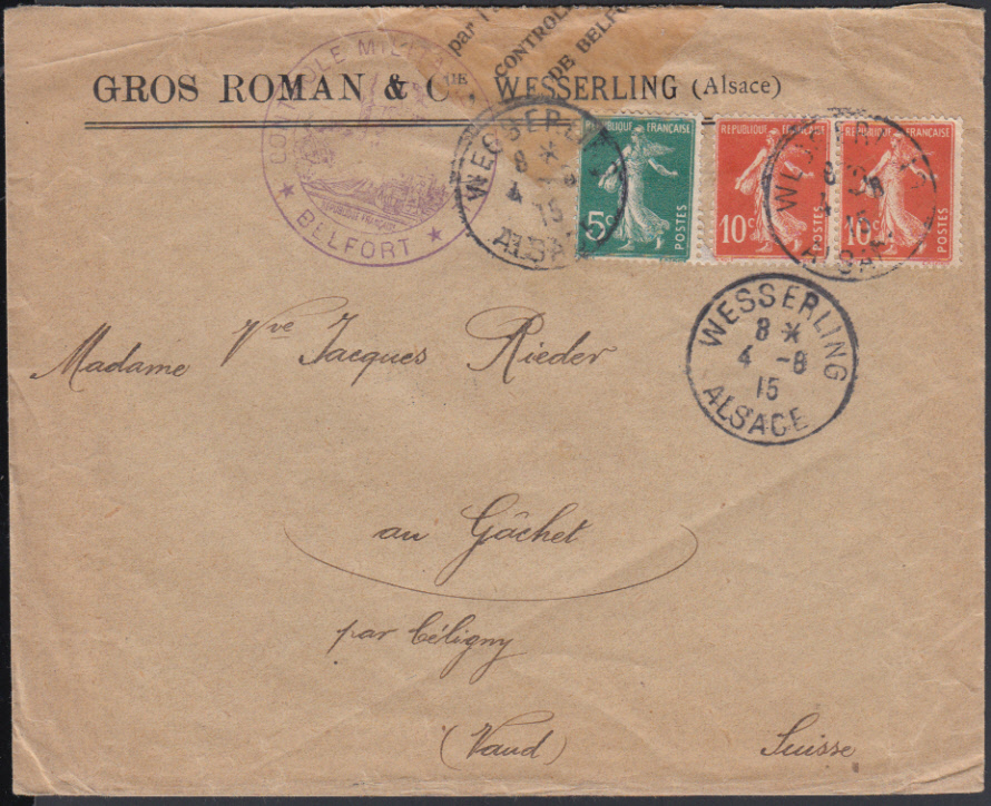 | Nr. 38362 - (7)F 117 - MASSEVAUX / ALSACE, 7 Vordruckbriefe 1915/16 mit 10 C. Semeuse (1 Brief mit 2 x 5 C.) nach Belfort aus dem "Alsace reconquise", 2 Stück mit Vordruck "MASEVAUX (Alsace francaise)", teils Öffnungsmängel | ||