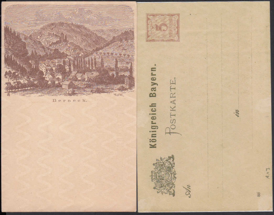 Nr. 38153 - GAPP 4 F7/01 - 5 Pf. Ziffer auf Raute violett, ungebr. GA mit rs. Zudruck "Berneck." (23 mm) und Bild in rotbraun, rs. teils leichte Aufhellungen wegen entfernter Klebereste